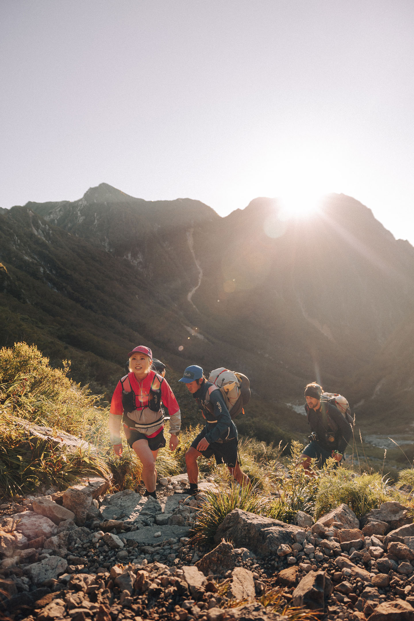 Besides running 60 kilometres, covering over 3,800 vertical metres, shooting a short film, and a ream of images for Rab’s spring launch, Jake’s main goal was for the trip to be a meaningful exchange of cultures and for the film to reflect the joy of sharing a mountain adventure. “I wanted to learn about the Japanese mountain traditions through the athletes we were travelling with and experience the hut culture along the way,” he said. “The Japanese Alps has got a really good network of mountain huts, maybe every 10K and there’s loads of different route options. You've got water refills, you've got food, and you've got places to sleep and stay warm in the evenings. It's kind of like a playground for fast-packing.” Having found that racing in mountain trail and sky races took the fun out of the sport, Jake is now a keen runner “just for the love of running.” The narrow ridgelines and technical mountain trails would be the perfect match for his skills, and the FKT would offer each of them an opportunity to embrace their competitive streak.